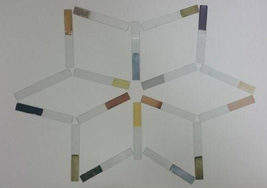 (左圖)張傳育研發長與得獎作品合影 (右圖)化材系吳知易老師作品致電變色玻璃照片 |
