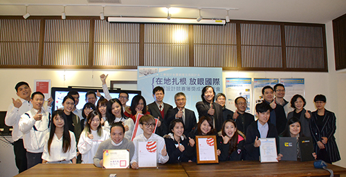 雲科大工設系、創設系國際競賽得獎成果發表師生與來賓合影。 |