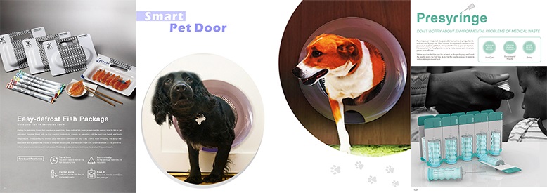 左邊為「快速解凍魚塊料理組」 榮獲"Red Dot: Best of the Best" award 中間及右邊為「寵物除蚤門」及「整合型安全針劑針筒」榮獲"Red Dot" award_Winner |
